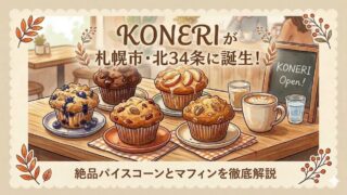 未分類KONERIが札幌市・北34条に誕生!絶品パイスコーンとマフィンを徹底解説 KONERIが札幌市北区北34条に2026年3月7日(プレオープン)にオープンしました。アマ子以前カフェバー「eremo」が営業していたビル「αK’s」の1階に誕生する、北海道産の厳選素材でつくるマフィンや焼き菓子のお店です。 今回は、基本... 2026.03.13未分類