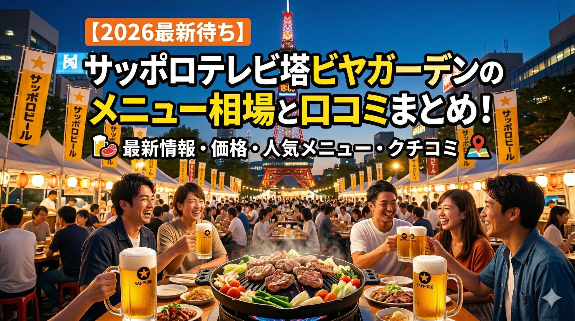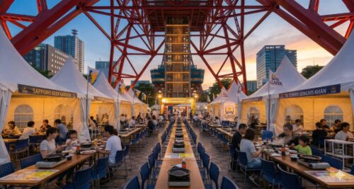 中でも「サッポロテレビ塔ビヤガーデン」は、ライトアップされたテレビ塔の真下という最高のロケーションで、冷えたビールと絶品のジンギスカンが味わえると毎年大人気です。