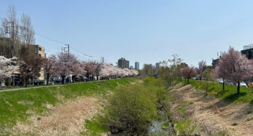 新川さくら並木は、昼も夜も楽しめる札幌屈指の桜の名所です。